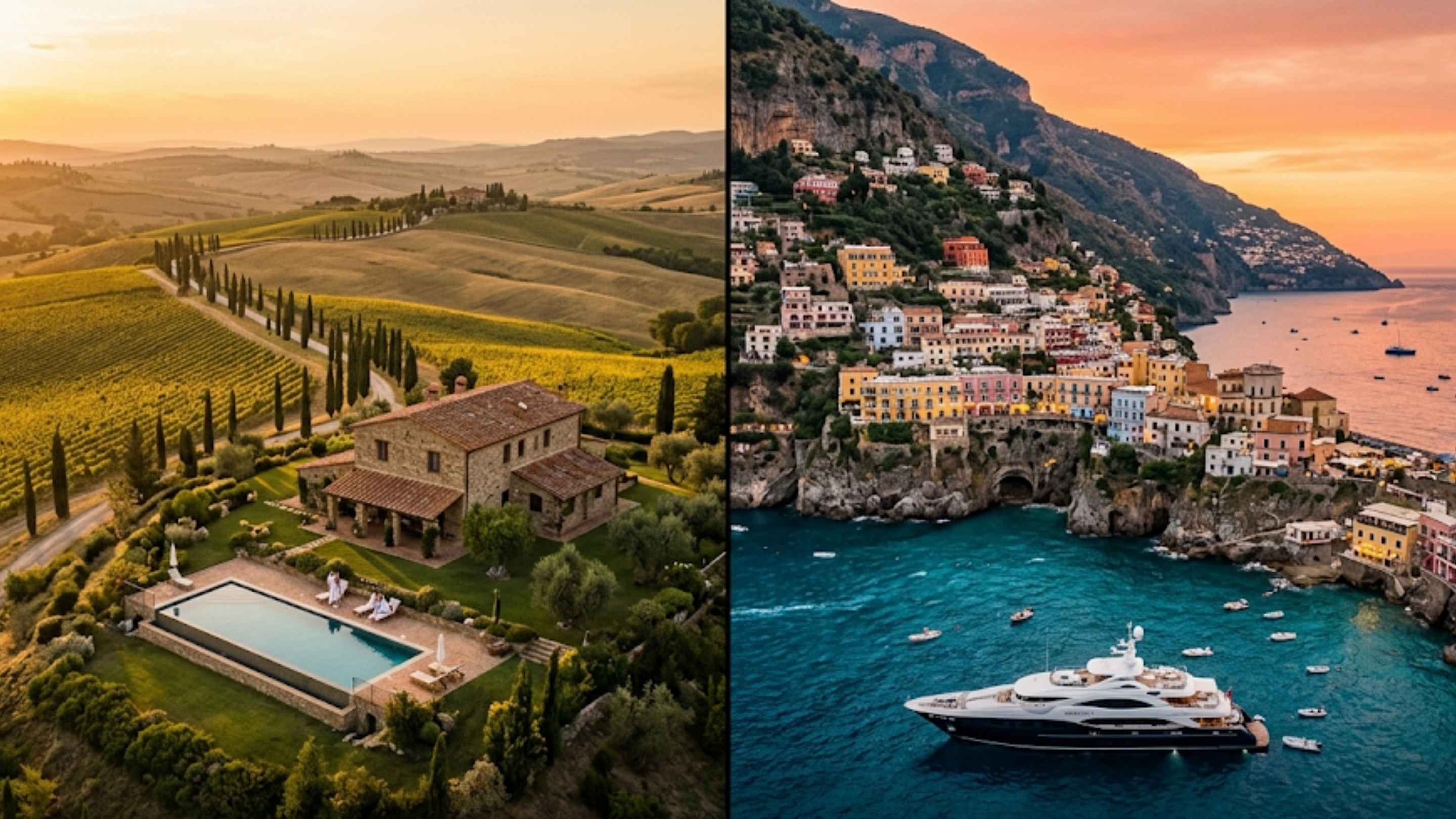Tuscany and the Amalfi Coast represent two of Italy’s most seductive luxury destinations — yet they deliver completely different experiences. One offers rolling golden hills, world-class wine, and a slower, soul-nourishing countryside pace. The other delivers dramatic cliffs, turquoise seas, glamorous coastal villages, and Mediterranean romance. For luxury travelers in 2026, choosing between them (or combining both) depends on what kind of Italy you crave.