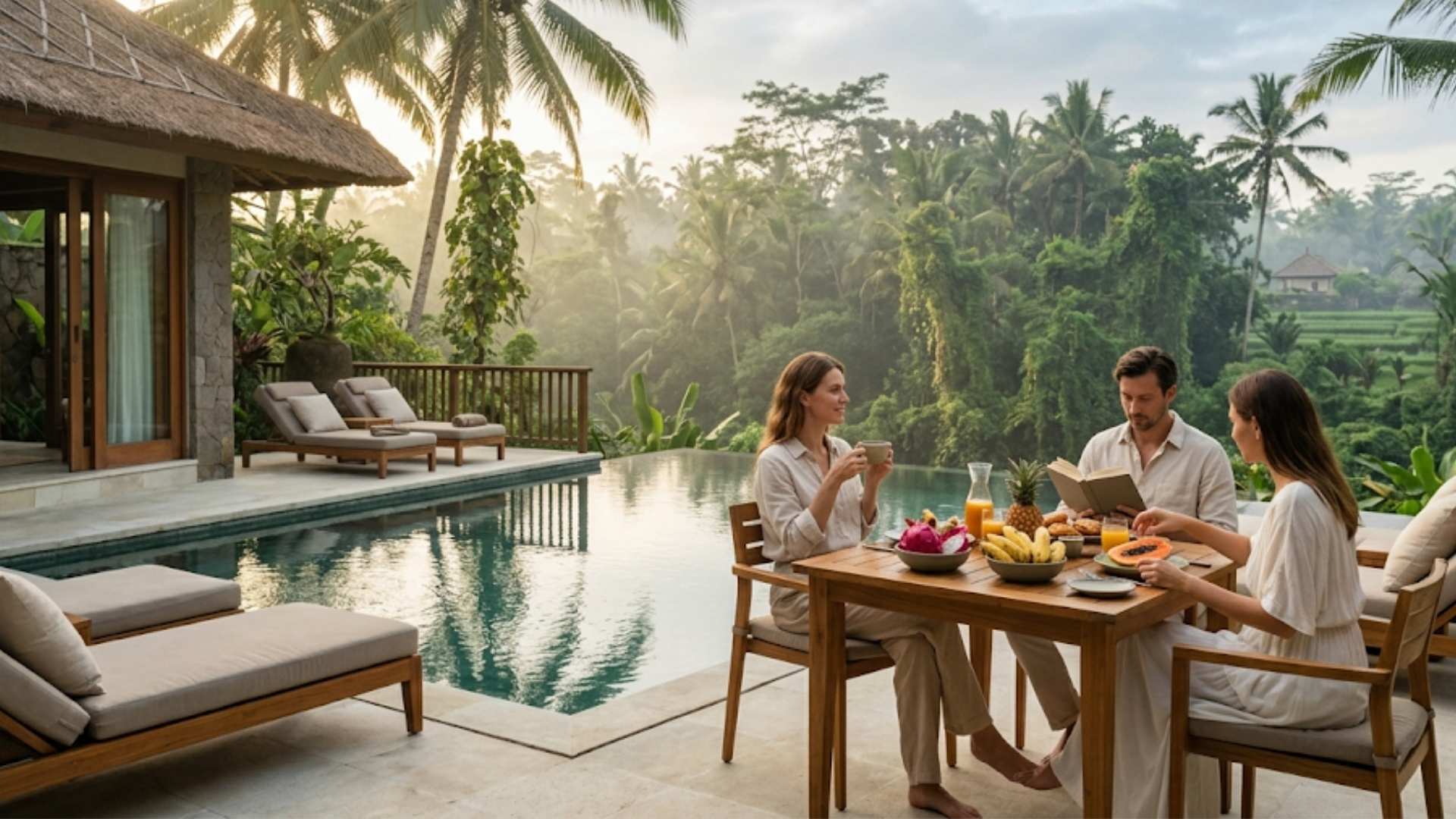 Morning in Ubud feels completely different from most luxury destinations. There is no city noise, no traffic rhythm, no pressure to move fast. Instead, you wake up to filtered jungle light, distant bird sounds, and a calm that feels almost curated.