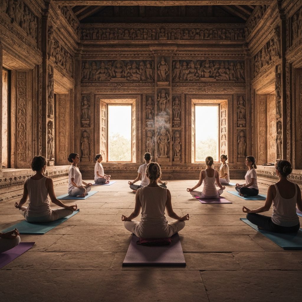 Sacred temple visits, meditation, ashram stay, and spiritual ceremonies.